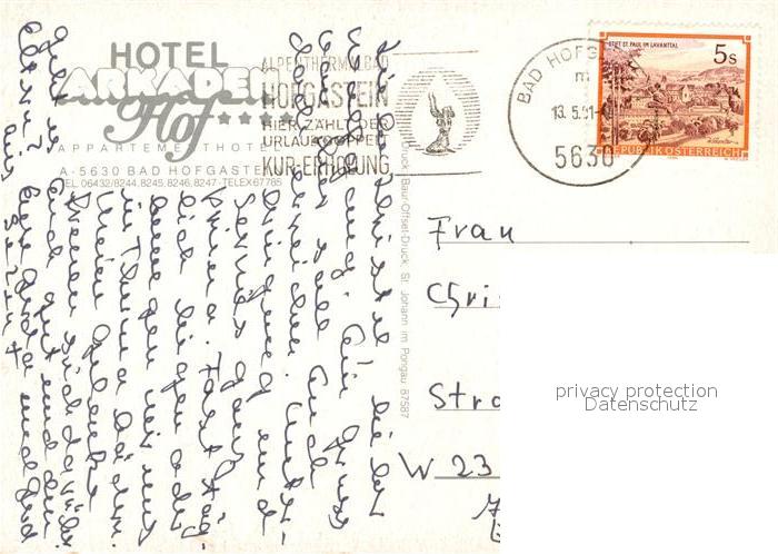 73104735 alte Postkarte Bad Hofgastein Hotel Arkadenhof Schwimmbad postalisch gelaufen Erhaltung siehe scans [WerneD78] KatCode: 11390322050402