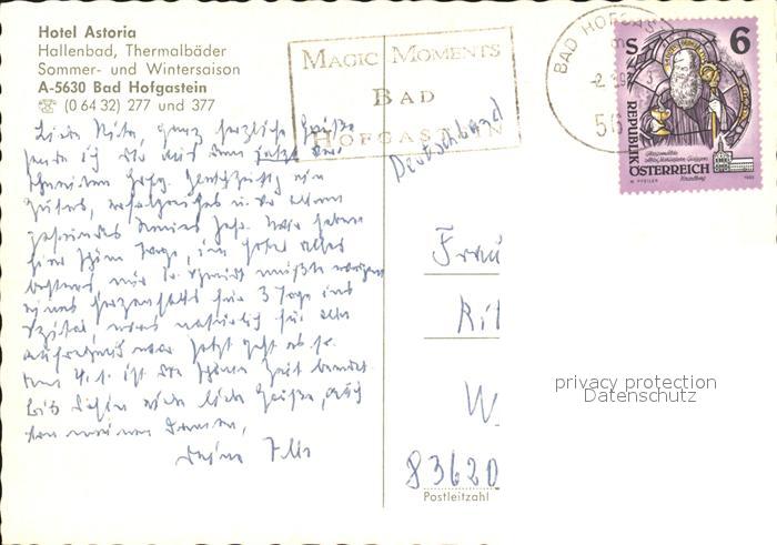 72022938 alte Postkarte Bad Hofgastein Hotel Astoria postalisch gelaufen Erhaltung siehe scans KatCode: 11390322050402