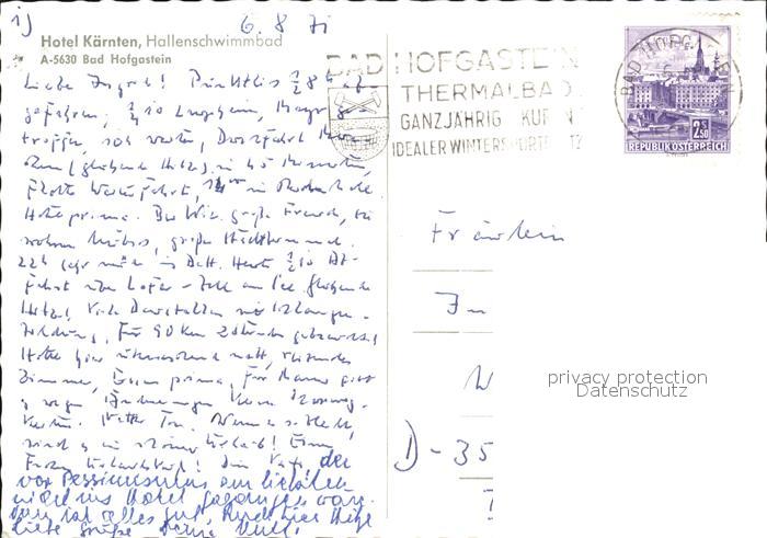 72470127 alte Postkarte Bad Hofgastein Hotel Kaernten Hallenschwimmbad postalisch gelaufen Erhaltung siehe scans KatCode: 11390322050402