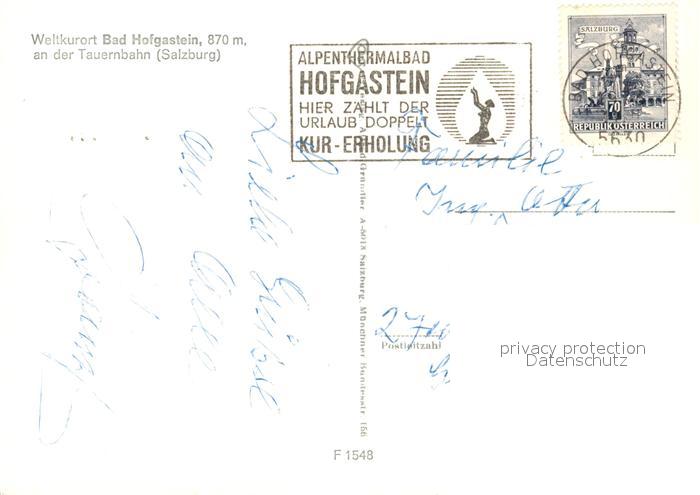 73161394 alte Postkarte Bad Hofgastein Hotel Moser Kirche postalisch gelaufen Erhaltung siehe scans [KathaD81] KatCode: 11390322050402