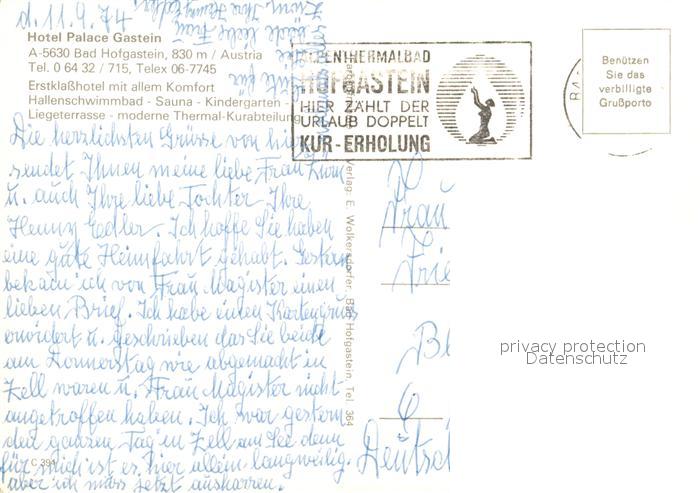 73122368 alte Postkarte Bad Hofgastein Hotel Palace Gastein postalisch gelaufen Erhaltung siehe scans [KathaD81] KatCode: 11390322050402
