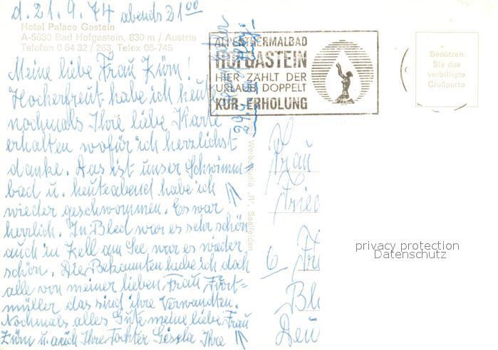 73122362 alte Postkarte Bad Hofgastein Hotel Palace Gastein postalisch gelaufen Erhaltung siehe scans [KathaD81] KatCode: 11390322050402