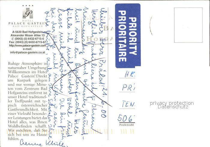 72438818 alte Postkarte Bad Hofgastein Hotel Palace Gastein postalisch gelaufen Erhaltung siehe scans KatCode: 11390322050402