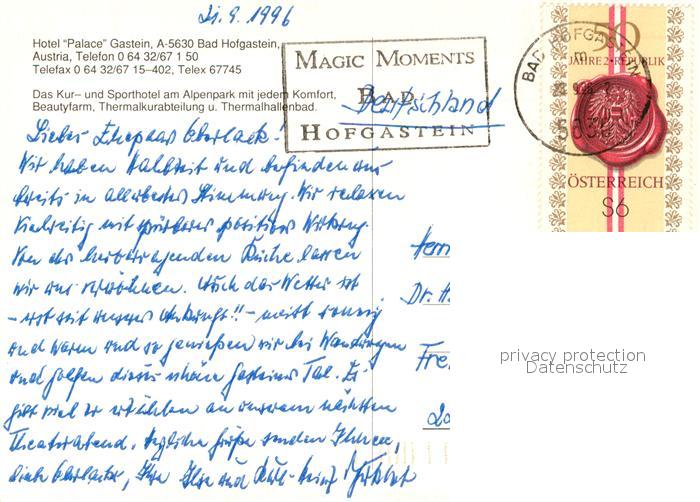 73234342 alte Postkarte Bad Hofgastein Hotel Palace Gastein Alpen postalisch gelaufen Erhaltung siehe scans [FriedD77] KatCode: 11390322050402