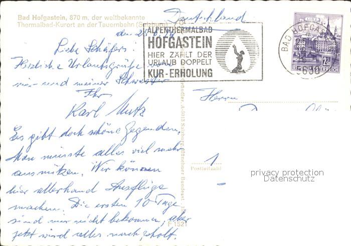 72396472 alte Postkarte Bad Hofgastein Hotel Panorama postalisch gelaufen Erhaltung siehe scans KatCode: 11390322050402