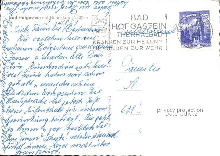 72430227 alte Postkarte Bad Hofgastein Hundskopf postalisch gelaufen Erhaltung siehe scans KatCode: 11390322050402