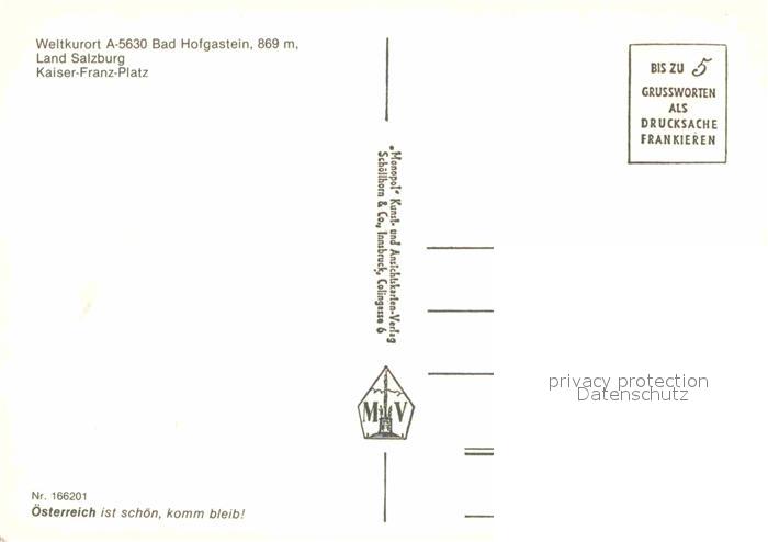 72654244 Bad Hofgastein Kaiser Franz Platz postalisch nicht gelaufen Erhaltung siehe scans [WerneD78] KatCode: 11390322050402