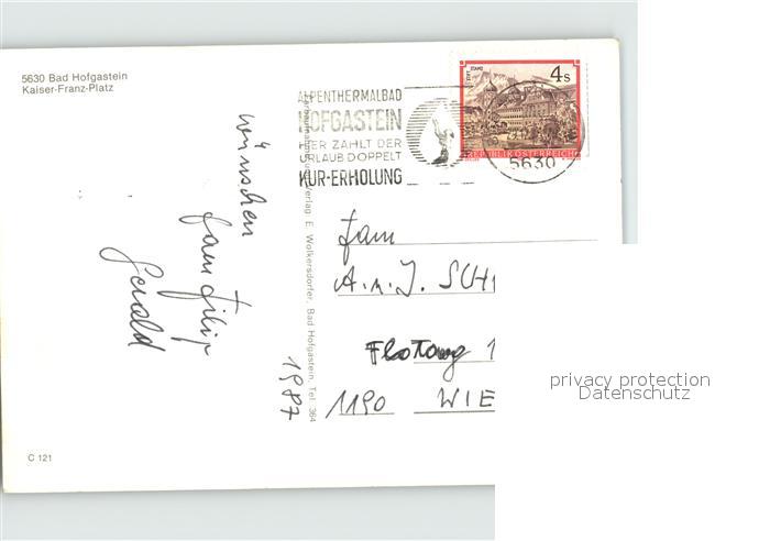 72431845 alte Postkarte Bad Hofgastein Kaiser Franz-Platz postalisch gelaufen Erhaltung siehe scans KatCode: 11390322050402