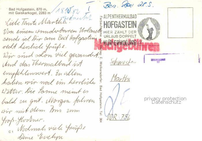72844924 alte Postkarte Bad Hofgastein Kirchenpartie mit Gaiskarkogel postalisch gelaufen Erhaltung siehe scans [LiesaD40] KatCode: 11390322050402