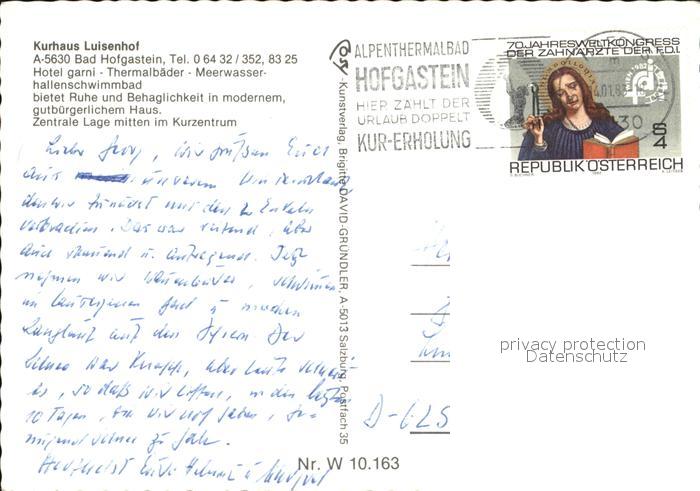 72430226 alte Postkarte Bad Hofgastein Kurhaus Luisenhof postalisch gelaufen Erhaltung siehe scans KatCode: 11390322050402