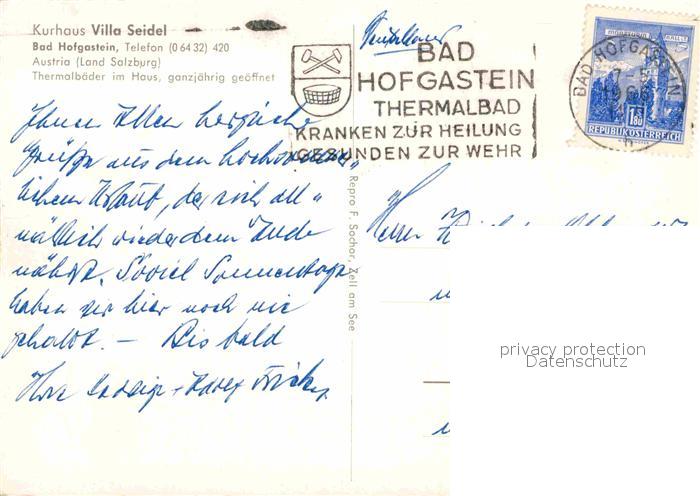 72865247 alte Postkarte Bad Hofgastein Kurhaus Villa Seidel postalisch gelaufen Erhaltung siehe scans [FriedD77] KatCode: 11390322050402