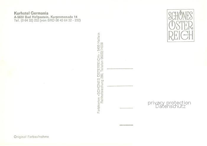 73049270 Bad Hofgastein Kurhotel Germania postalisch nicht gelaufen Erhaltung siehe scans [KathaD81] KatCode: 11390322050402