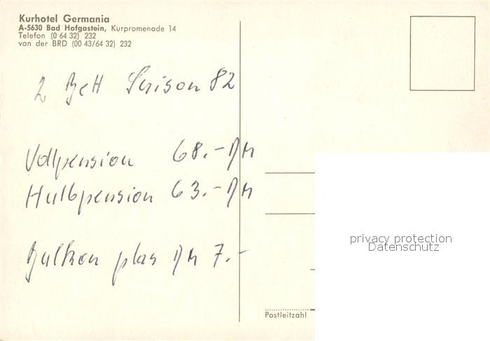 73030521 Bad Hofgastein Kurhotel Germania postalisch nicht gelaufen Erhaltung siehe scans [KathaD81] KatCode: 11390322050402