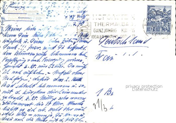 72494219 alte Postkarte Bad Hofgastein Kurhotel Germania postalisch gelaufen Erhaltung siehe scans KatCode: 11390322050402