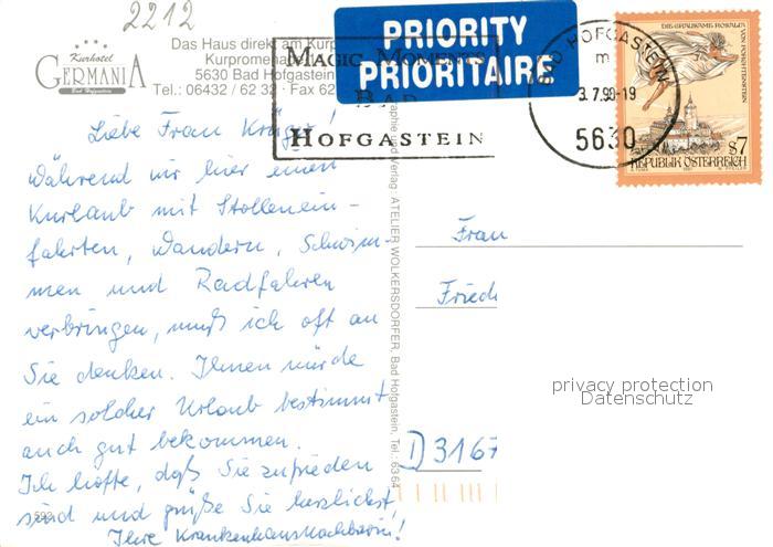 73522203 alte Postkarte Bad Hofgastein Kurhotel Germania Gastraeume postalisch gelaufen Erhaltung siehe scans [WerneD78] KatCode: 11390322050402