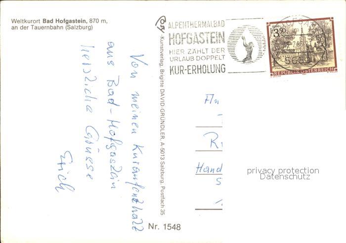 72231053 alte Postkarte Bad Hofgastein Kurhotel Moser Brunnen postalisch gelaufen Erhaltung siehe scans KatCode: 11390322050402