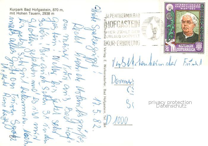72970487 alte Postkarte Bad Hofgastein Kurpark mit Hohen Tauern postalisch gelaufen Erhaltung siehe scans [LiesaD40] KatCode: 11390322050402