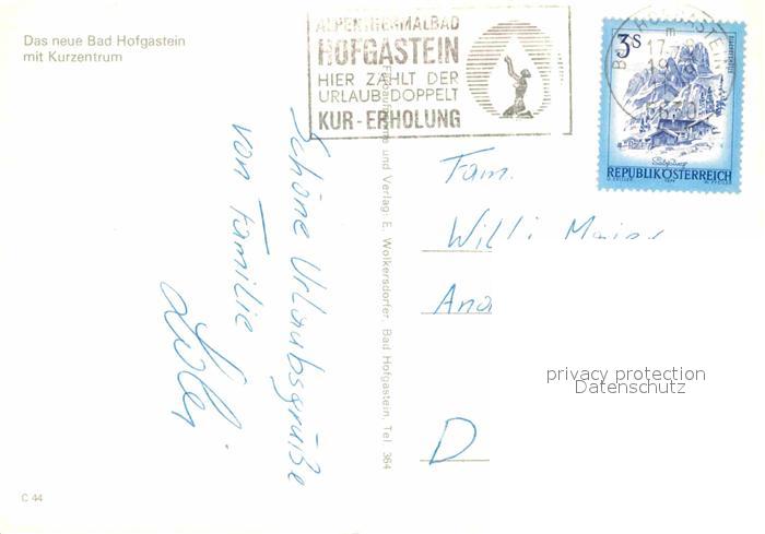72824652 alte Postkarte Bad Hofgastein Kurzentrum postalisch gelaufen Erhaltung siehe scans [AndreD76] KatCode: 11390322050402