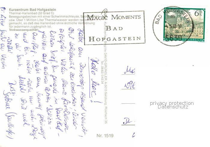 72762015 alte Postkarte Bad Hofgastein Kurzentrum Thermal Hallenbad Bewegungsbecken postalisch gelaufen Erhaltung siehe scans [WerneD78] KatCode: 11390322050402