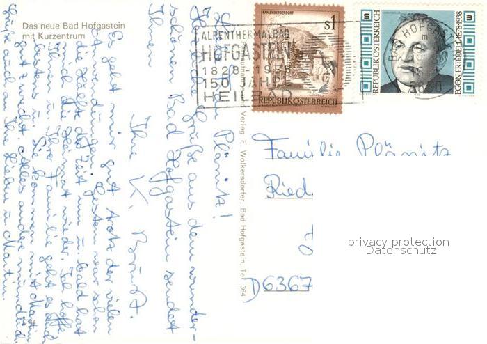 73264500 alte Postkarte Bad Hofgastein Kurzentrum postalisch gelaufen Erhaltung siehe scans [PaolaD17] KatCode: 11390322050402