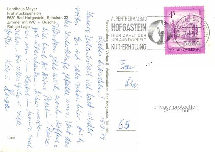 72906826 alte Postkarte Bad Hofgastein Landhaus Mayer postalisch gelaufen Erhaltung siehe scans [LiesaD40] KatCode: 11390322050402