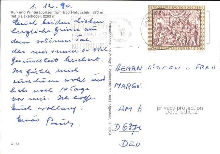 72498809 alte Postkarte Bad Hofgastein mit Gaiskarkogel postalisch gelaufen Erhaltung siehe scans KatCode: 11390322050402