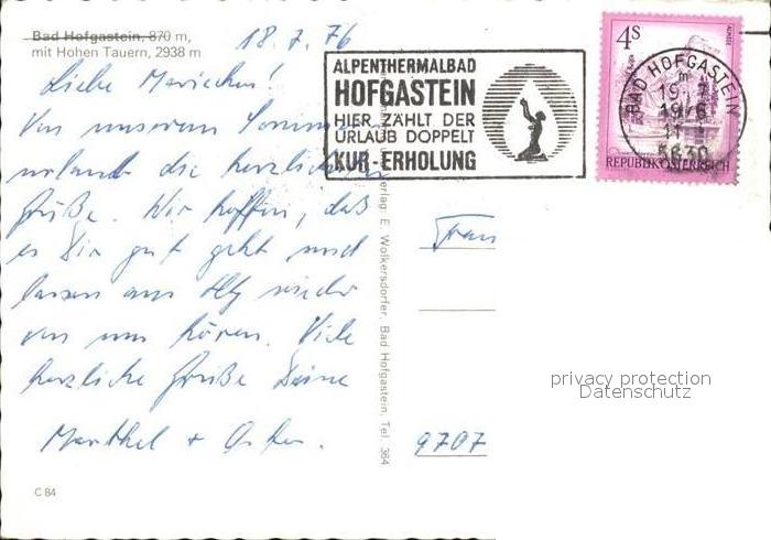 72517805 alte Postkarte Bad Hofgastein mit Graukogel und Feuersang postalisch gelaufen Erhaltung siehe scans KatCode: 11390322050402