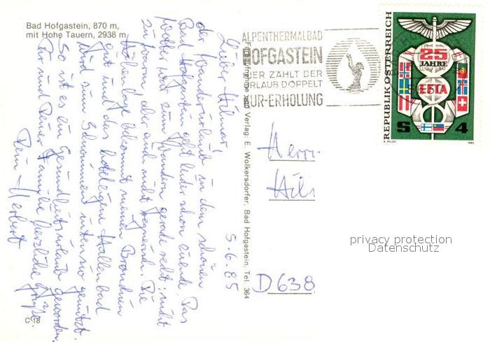 73295248 alte Postkarte Bad Hofgastein mit Hohe Tauern postalisch gelaufen Erhaltung siehe scans [WerneD78] KatCode: 11390322050402