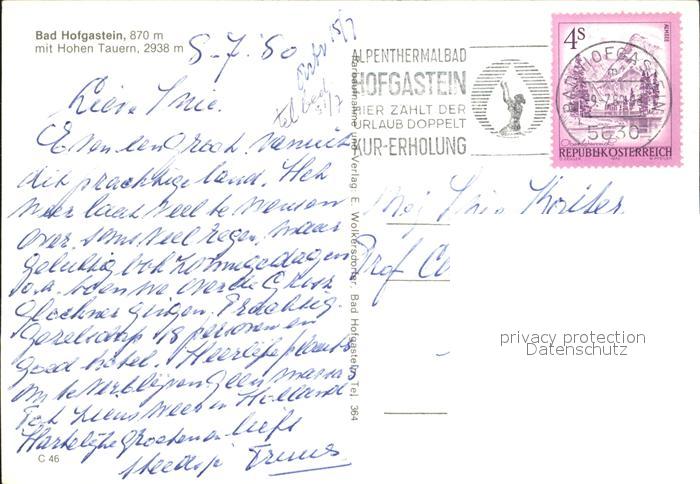 72094892 alte Postkarte Bad Hofgastein mit Hohen Tauern postalisch gelaufen Erhaltung siehe scans KatCode: 11390322050402