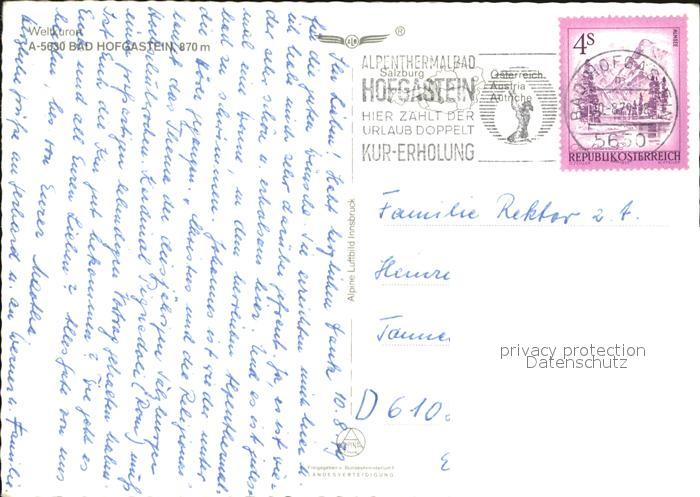 72410664 alte Postkarte Bad Hofgastein Panorama Fliegeraufnahme postalisch gelaufen Erhaltung siehe scans KatCode: 11390322050402