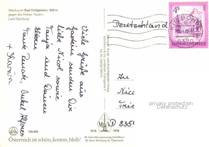 72671447 alte Postkarte Bad Hofgastein Panorama mit den Hohen Tauern postalisch gelaufen Erhaltung siehe scans [WerneD78] KatCode: 11390322050402
