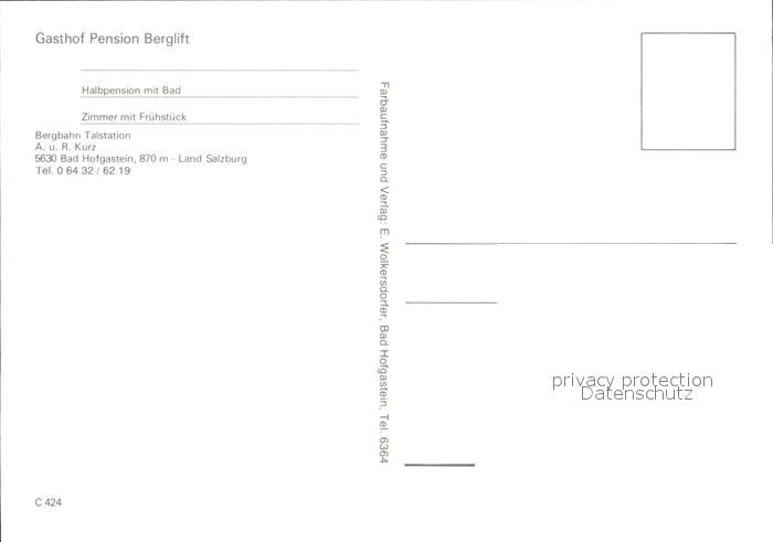 72315365 Bad Hofgastein Pension Berglift Bergbahn Hallenbad Freibad postalisch nicht gelaufen Erhaltung siehe scans KatCode: 11390322050402