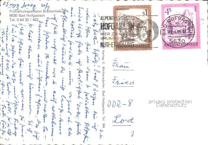 72499576 alte Postkarte Bad Hofgastein Pension Breitenfellner postalisch gelaufen Erhaltung siehe scans KatCode: 11390322050402