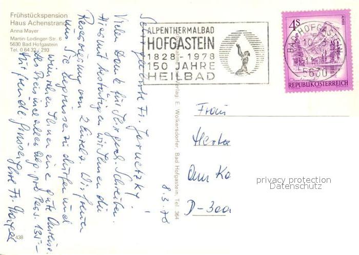 13212969 alte Postkarte Bad Hofgastein Pension Haus Achenstrand postalisch gelaufen Erhaltung siehe scans [LiesaD40] KatCode: 11390322050402