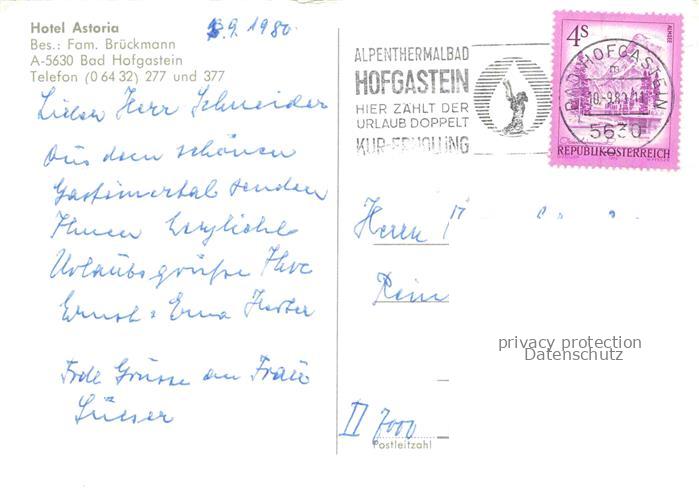 74137569 alte Postkarte BAD HOFGASTEIN Pinzgau Salzburg AT Hotel Astoria postalisch gelaufen Erhaltung siehe scans [WerneD78] KatCode: 11390322050402