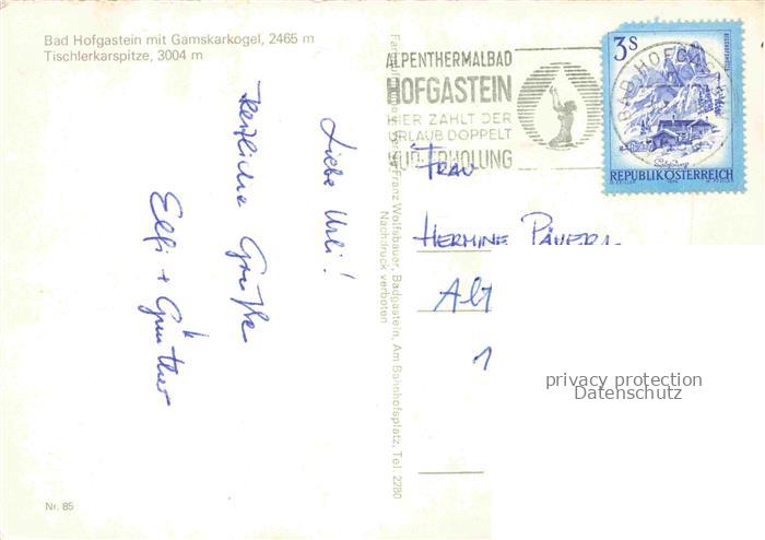 74137602 alte Postkarte BAD HOFGASTEIN Pinzgau Salzburg AT mit Gamskarkogel postalisch gelaufen Erhaltung siehe scans [WerneD78] KatCode: 11390322050402