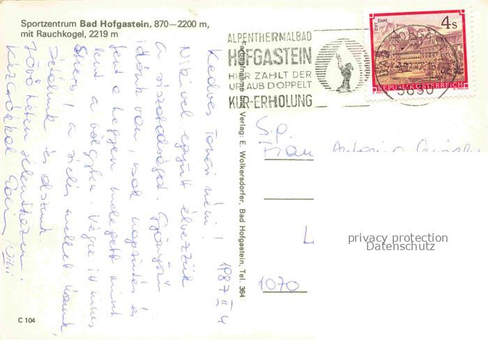 74136710 alte Postkarte BAD HOFGASTEIN Pinzgau Salzburg AT Winterpanorama Sportzentrum Blick gegen Rauchkogel postalisch gelaufen Fliegeraufnahme Erhaltung siehe scans [FriedD77] KatCode: 11390322050402