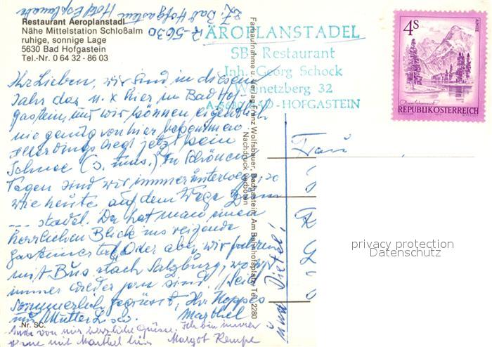 73219525 alte Postkarte Bad Hofgastein Restaurant Aeroplanstadt Sonnenterrasse Alpenblick postalisch gelaufen Erhaltung siehe scans [FriedD77] KatCode: 11390322050402