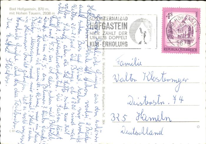 71419635 alte Postkarte Bad Hofgastein Salzburg postalisch gelaufen Erhaltung siehe scans KatCode: 11390322050402