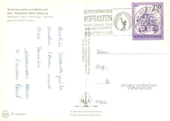 73231264 alte Postkarte Bad Hofgastein Schlossalm Skiheim gegen Hohe Tauern postalisch gelaufen Erhaltung siehe scans [LiesaD40] KatCode: 11390322050402