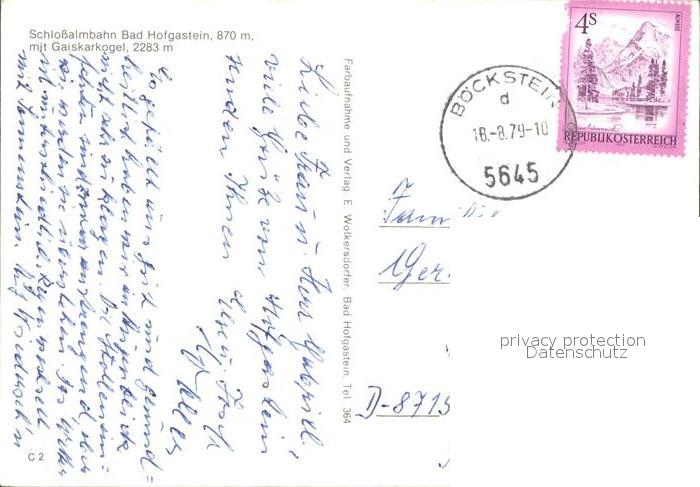 72210715 alte Postkarte Bad Hofgastein Schlossalmbahn mit Gaiskarkogel postalisch gelaufen Erhaltung siehe scans KatCode: 11390322050402