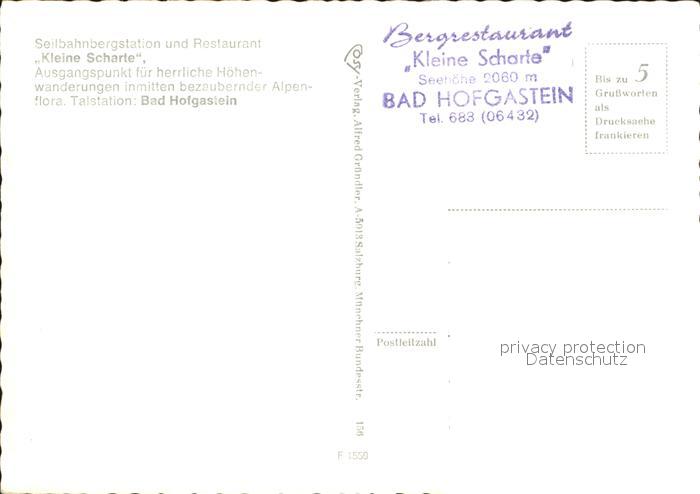72381592 Bad Hofgastein Seilbahnbergstation Restaurant Kleine Scharte postalisch nicht gelaufen Erhaltung siehe scans KatCode: 11390322050402
