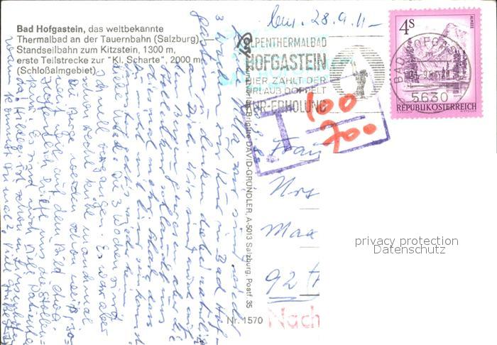 72305827 alte Postkarte Bad Hofgastein Standselbahn zum Kitzstein postalisch gelaufen Erhaltung siehe scans KatCode: 11390322050402