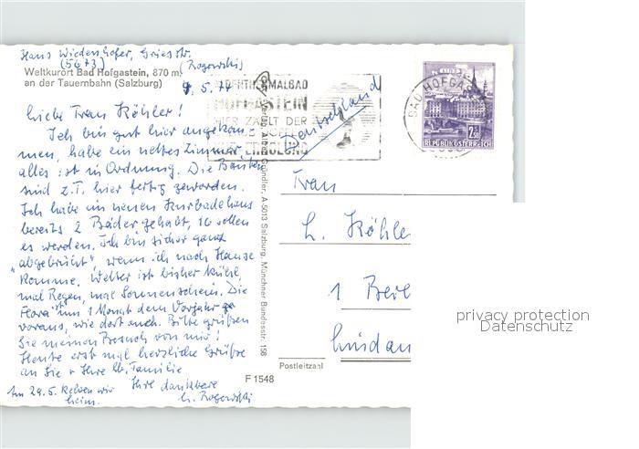 72472578 alte Postkarte Bad Hofgastein Tauernbahn postalisch gelaufen Erhaltung siehe scans KatCode: 11390322050402