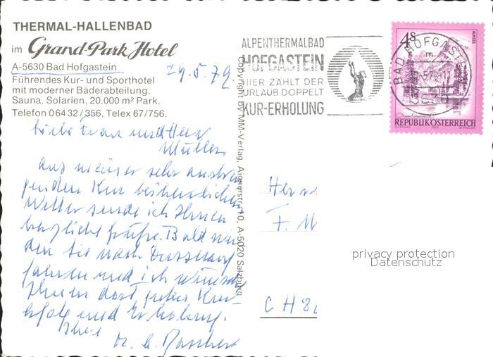 72333803 alte Postkarte Bad Hofgastein Thermal Hallenbad Grand Park Hotel postalisch gelaufen Erhaltung siehe scans KatCode: 11390322050402
