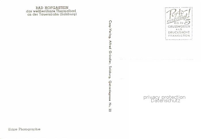 72821060 Bad Hofgastein Thermalbad an der Tauernbahn Alpenpanorama postalisch nicht gelaufen Erhaltung siehe scans [FriedD77] KatCode: 11390322050402