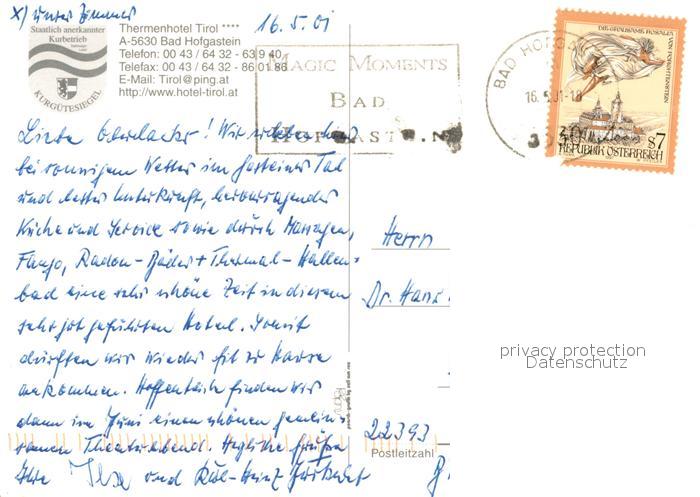 13235999 alte Postkarte Bad Hofgastein Thermenhotel Tirol postalisch gelaufen Erhaltung siehe scans [FriedD77] KatCode: 11390322050402