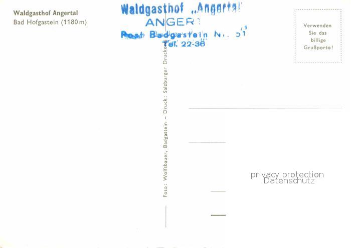 72654250 Bad Hofgastein Waldgasthof Angertal postalisch nicht gelaufen Erhaltung siehe scans [WerneD78] KatCode: 11390322050402
