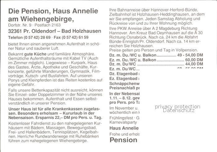 72244023 Bad Holzhausen Luebbecke Haus Annelie postalisch nicht gelaufen Werbekarte (keine Postkarte) Erhaltung siehe scans KatCode: 11110005770036