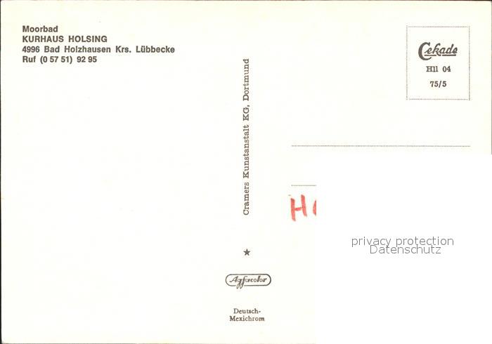 71908818 Bad Holzhausen Luebbecke Moorbad Kurhaus Holsing postalisch nicht gelaufen Erhaltung siehe scans KatCode: 11110005770036